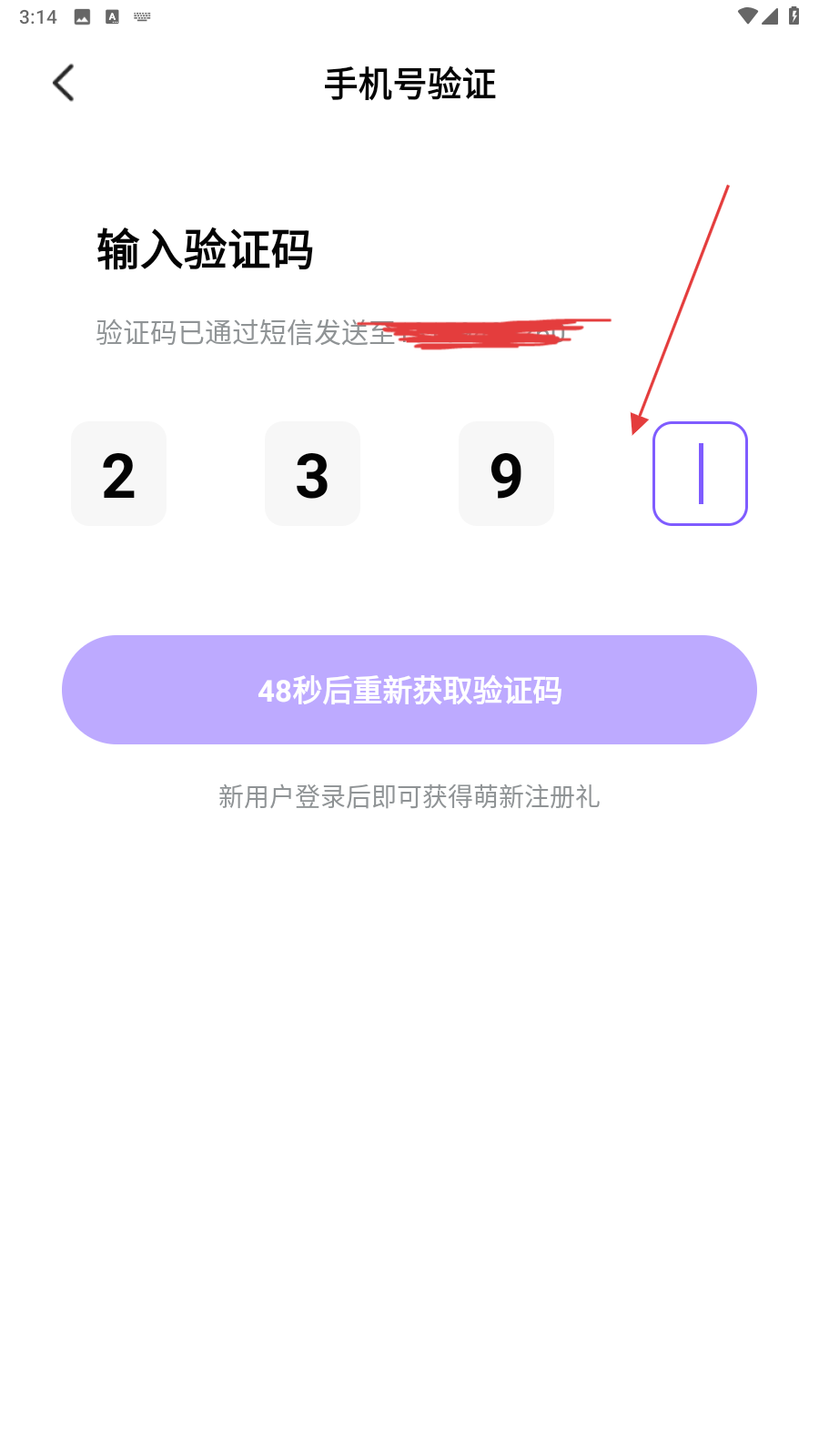 4、在手機號驗證的頁面內(nèi),輸入驗證碼后無需任何操作即刻登錄。