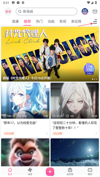 1、打開手機嗶哩嗶哩app,通過右側(cè)的【欄目】按鈕篩選進入更多欄目