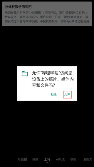 2、允許嗶哩嗶哩訪問您設(shè)備上的照片、媒體內(nèi)容和文件