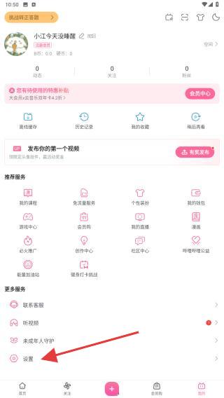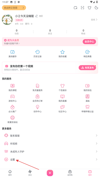 1、啟動嗶哩嗶哩APP,進(jìn)入個人主頁內(nèi)點擊設(shè)置的功能按鈕。