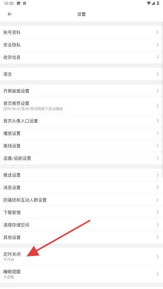 2、在設(shè)置頁面內(nèi),向下滑動找到并點擊定時關(guān)閉的按鈕。