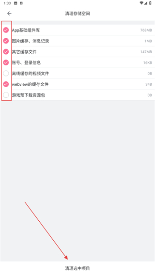 4、勾選需要清理的文件后,再點擊清理選中項目即可。