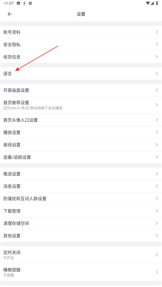 3、進(jìn)入設(shè)置的頁面內(nèi),找到并點擊語言的按鈕。