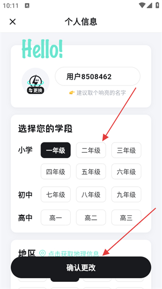 3、選擇要切換的年級,點(diǎn)擊確認(rèn)更改按鈕,即可完成年級切換。