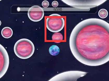 2.為了繼續(xù)前進,大家需要使用噴射氣流,將白色圈層的星球與其它星球相撞,消耗掉外部氣層,直至完全消失;