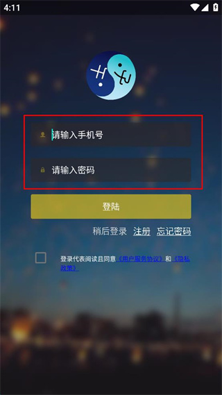 3、在登錄界面輸入對(duì)應(yīng)的手機(jī)號(hào)和密碼,準(zhǔn)備完成賬號(hào)的登錄操作。