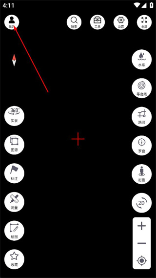 1、打開(kāi)該地圖工具軟件進(jìn)入功能界面,點(diǎn)擊左上角我的選項(xiàng),切換至個(gè)人中心頁(yè)面。