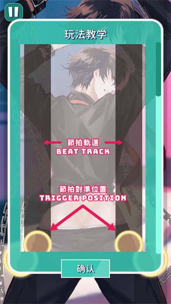 3、按照屏幕上的玩法教學(xué)提示進(jìn)行游玩,查看【節(jié)拍軌道】和【節(jié)拍對(duì)準(zhǔn)位置】跟隨音樂的節(jié)奏。