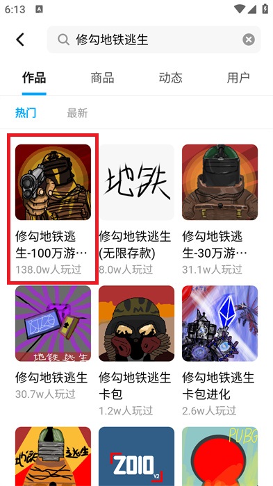 3、搜索到結(jié)果之后,玩家只需要點(diǎn)擊第一個【修勾地鐵逃生游戲】就可以進(jìn)入到詳情界面之中;