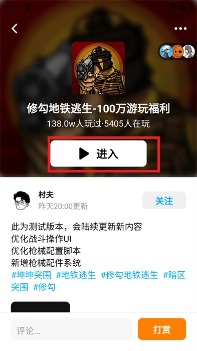 4、然后我們就會進(jìn)入到游戲詳情頁面,在該頁面中,點(diǎn)擊其中的【進(jìn)入】就可以等待加載完成之后進(jìn)入到游戲。