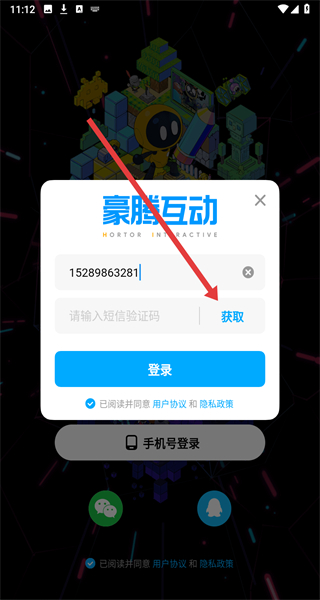 3、輸入手機(jī)號碼,點(diǎn)擊“獲取”以獲取短信驗證碼。