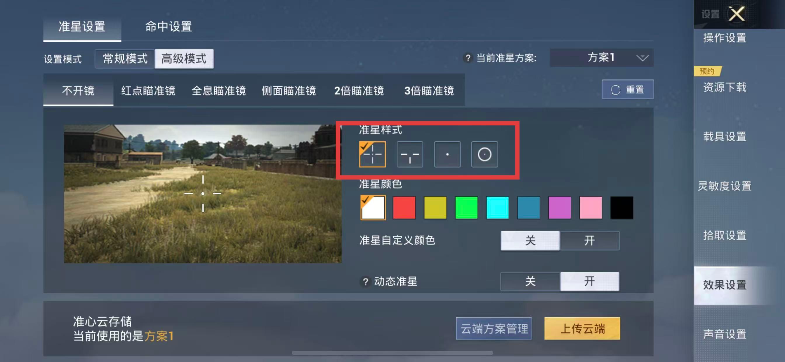 3、針對(duì)不同瞄準(zhǔn)鏡,可以設(shè)置對(duì)應(yīng)的準(zhǔn)星樣式,點(diǎn)擊想要的準(zhǔn)星樣式圖標(biāo)即可完成設(shè)置。