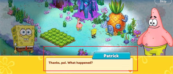 4、上一步的物品解鎖后,派大星將會出現(xiàn),可以和派大星進行對話,點擊對話框即可;