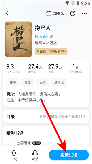 2、在書籍詳情頁面,點(diǎn)擊免費(fèi)試讀按鈕,進(jìn)入書籍閱讀頁面。