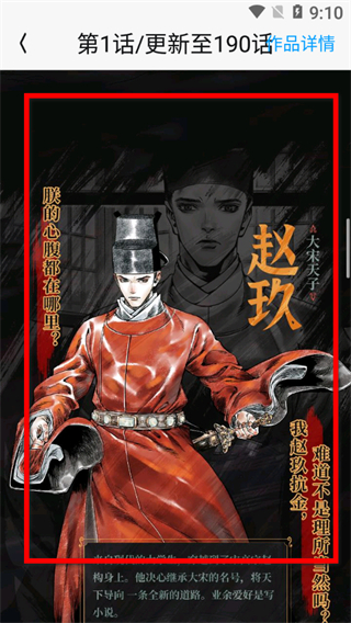 3、在作品詳情頁,即可開始閱讀漫畫內(nèi)容,查看畫面等信息。