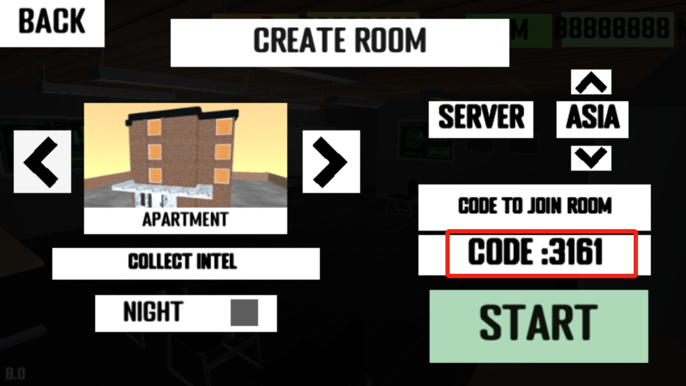 3、在這里可以更換不同的戰(zhàn)斗場景,在房間的設置上可以看到在code這里就是房間密碼了;