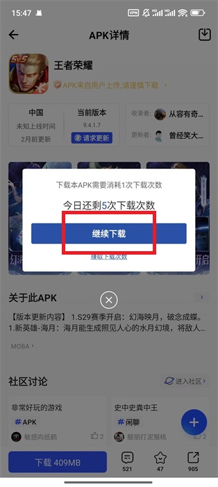 4、點(diǎn)擊下載之后會有一個下載提示,我們只需要點(diǎn)擊繼續(xù)下載即可;