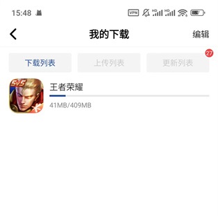 5、最后我們就可以在下載列表看到正在下載的游戲。