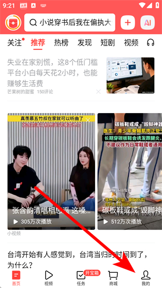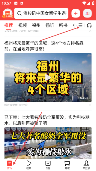 1、點擊查看頭條搜索極速版首頁,尋找右上角的三點目錄張開內(nèi)容。