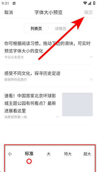 4、在字體大小預(yù)覽頁面,選擇想要的字體大小,點擊確定完成設(shè)置。