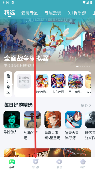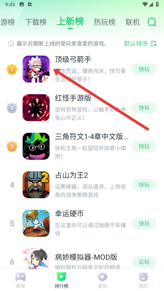 1、進入到應用首頁后,可以點擊下方排行榜按鈕,進入查看最新游戲。