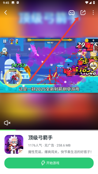 3、在進入到游戲詳情頁面中,可以點擊頂部轉(zhuǎn)發(fā)按,進行分享操作。