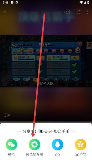 4、可以通過點擊彈窗中圖標分享,如點擊使用微信朋友圈的方式進行分享游戲。