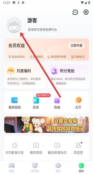 2、在進入到我的主頁中,可以點擊頭像區(qū)域后,準備開始進行登錄操作。