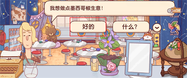 1、進(jìn)入到游戲的場景內(nèi)之后,玩家將需要進(jìn)行顧客訂單的接單,接單后可以點(diǎn)擊屏幕上的【好的】按鈕;