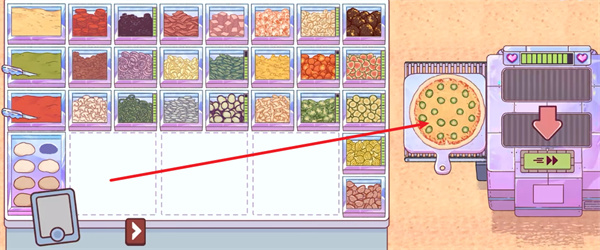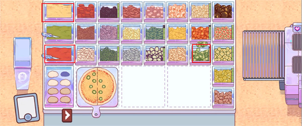3、揉制好面團(tuán)之后,玩家需要按照顧客的需求來進(jìn)行配菜的放置;