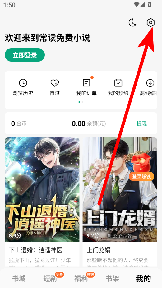 1、打開(kāi)常讀小說(shuō)APP,點(diǎn)擊底部導(dǎo)航欄我的選項(xiàng),進(jìn)入個(gè)人頁(yè)面。