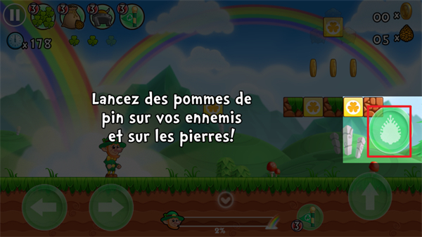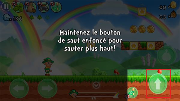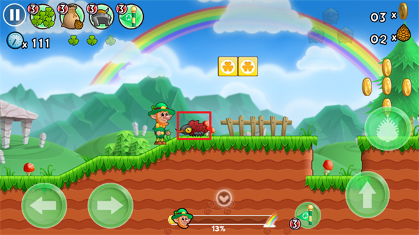 4、此時玩家將需要正式的開啟游戲,遇到四葉草時,可以點擊向上箭頭按鈕來進行金幣的獲?。?
