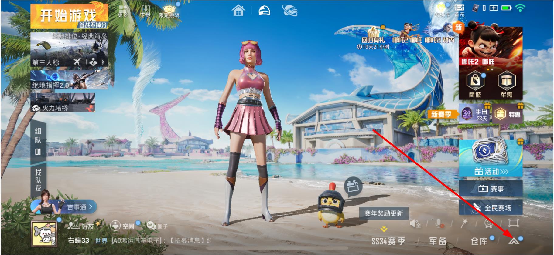 1、在游戲主界面,點(diǎn)擊右下角的展開圖標(biāo)類似三角形箭頭。