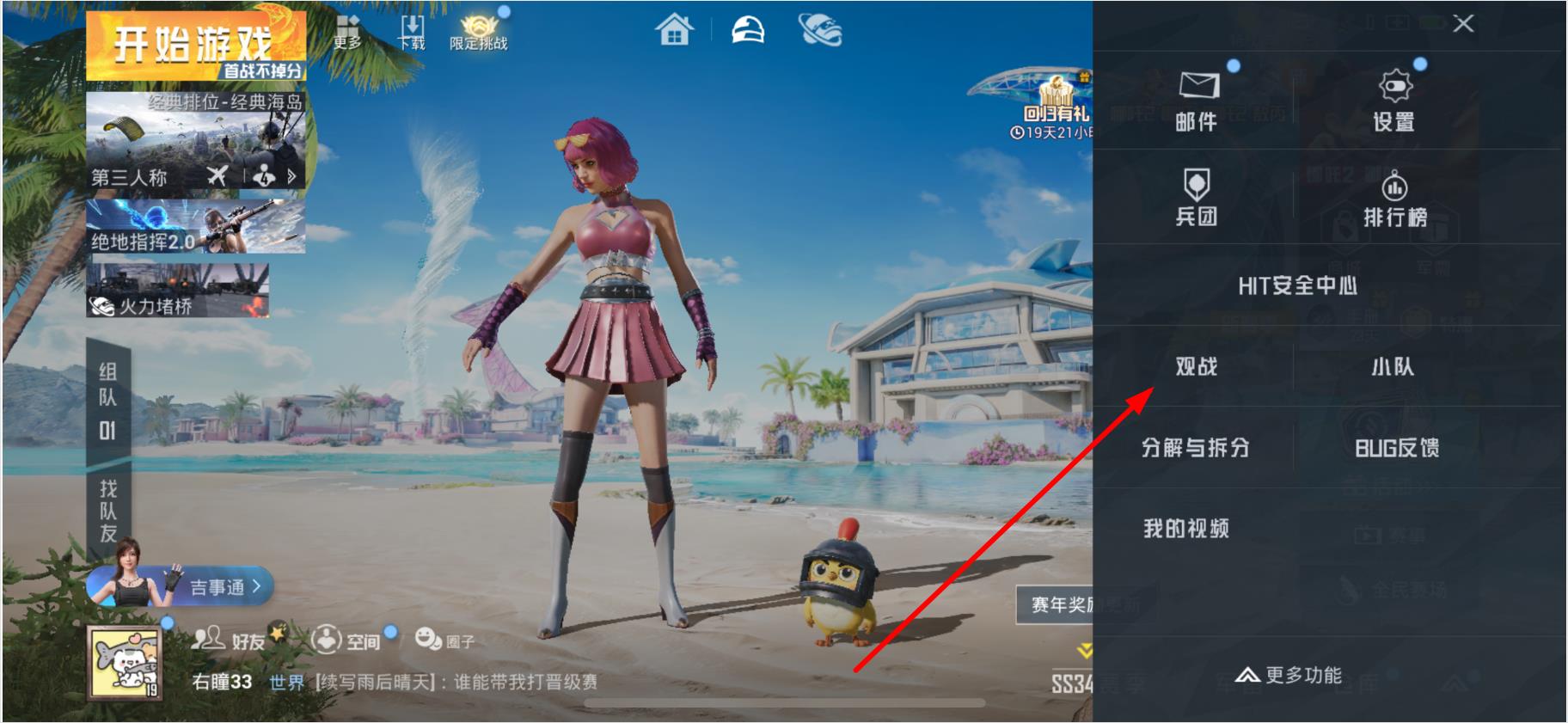 2、在彈出的功能列表中,選擇觀戰(zhàn)選項(xiàng)。