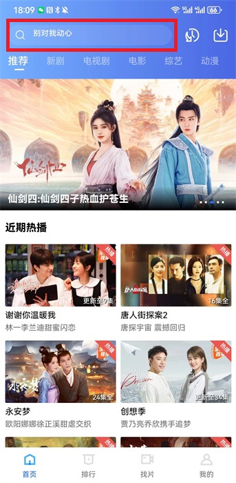 1、打開軟件,在軟件的界面中點擊上方的【搜索框】去進行搜索我們想要看的電視劇;
