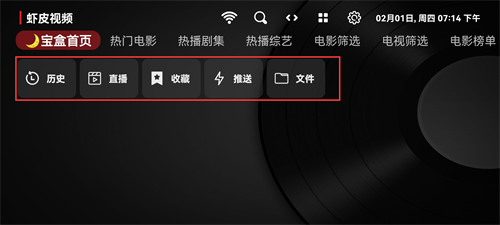 1下載安裝好軟件后,點(diǎn)擊進(jìn)入首頁(yè),在寶盒首頁(yè),有各種觀看歷史/直播/收藏/推送等不同欄目功能;