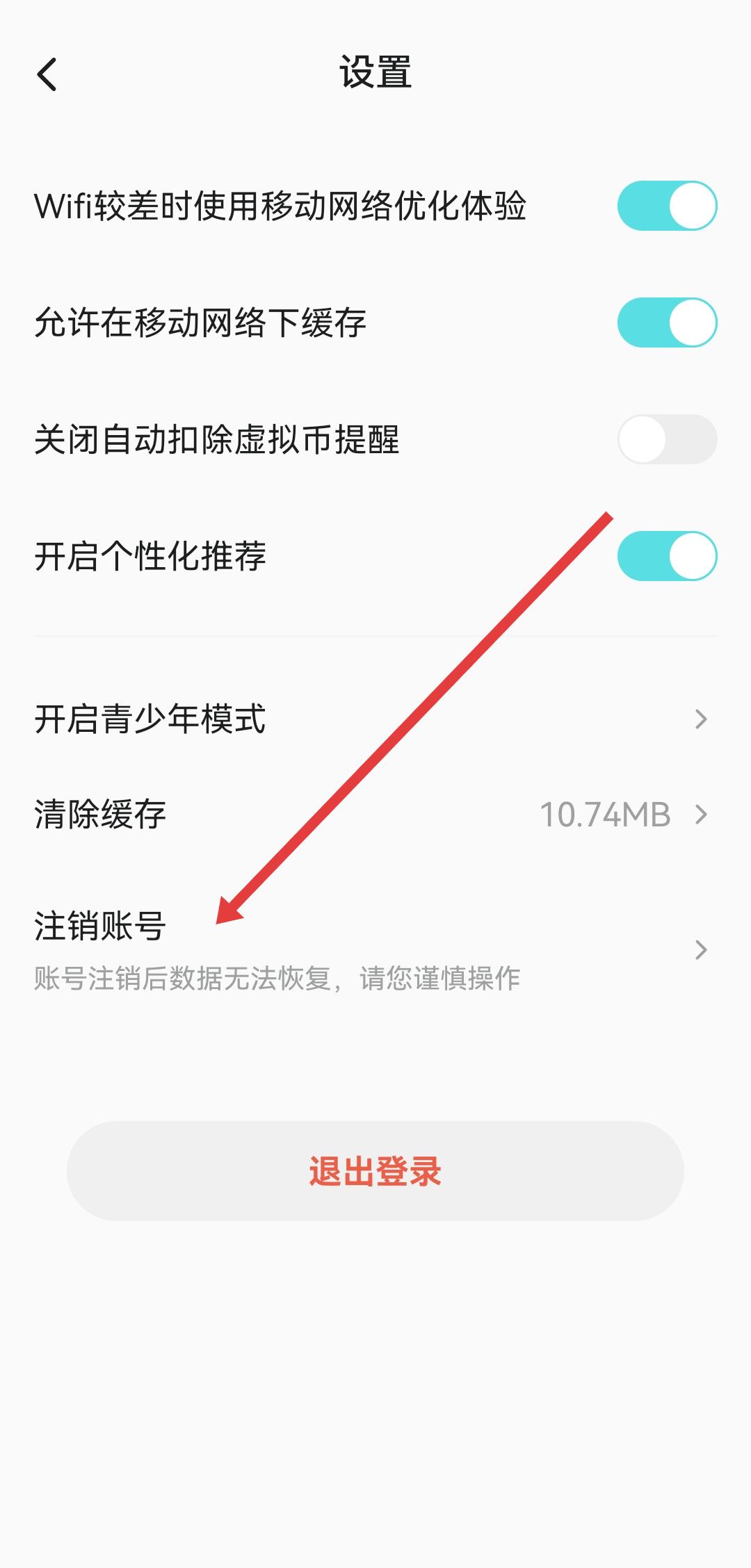 2、在設(shè)置的頁面中,找到并點(diǎn)擊注銷賬號(hào)的選項(xiàng),進(jìn)入注銷賬號(hào)說明頁面。