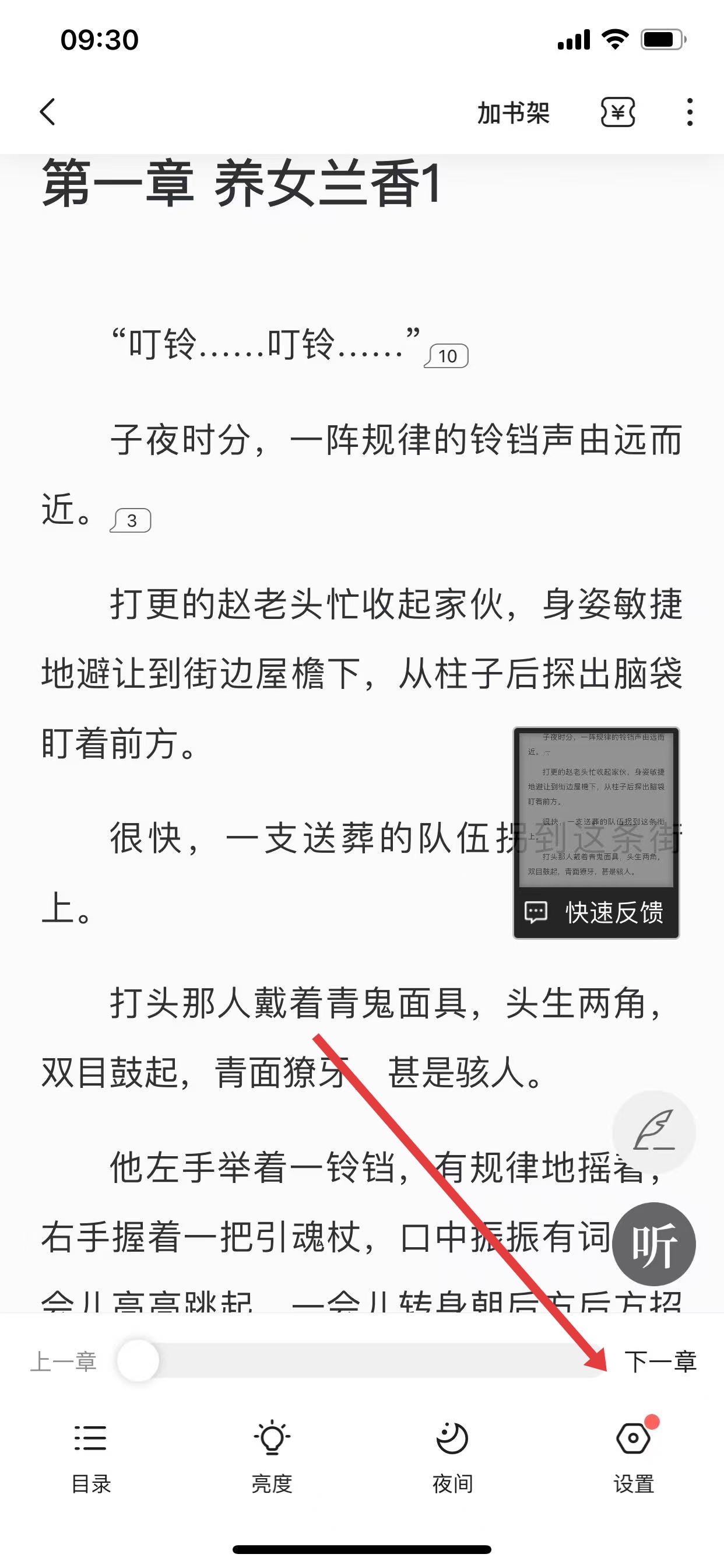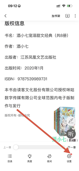 3、在閱讀界面,點擊設(shè)置選項,展開設(shè)置菜單。