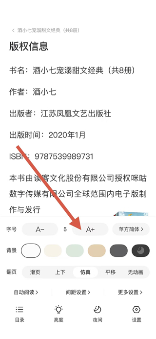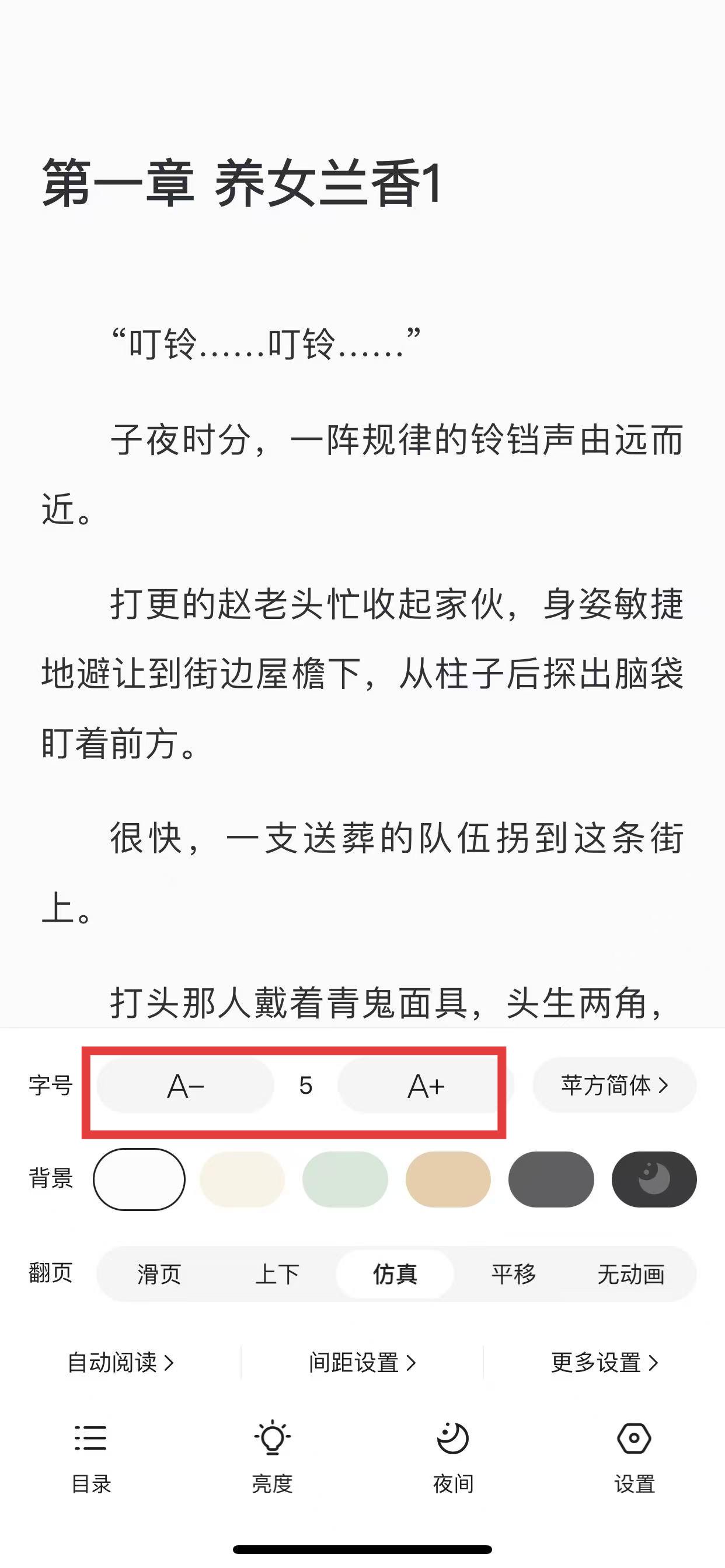 4、在設(shè)置菜單中,點擊字號區(qū)域的A-或A+按鈕,即可調(diào)整字體大小。