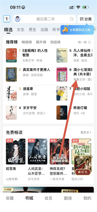 1、打開咪咕閱讀應(yīng)用,在書城界面中,選擇一本想閱讀的小說。