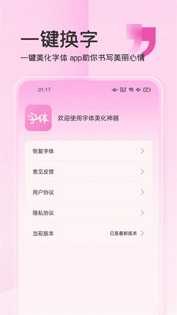 字體美化神器是一款能夠使我們的文字變得更加獨(dú)特和美觀的應(yīng)用程序,這款軟件內(nèi)為我們準(zhǔn)備了多種字體選擇,確保用戶能隨心所欲地修改文字樣式,使我們的聊天內(nèi)容、社交媒體帖子和照片更加生動(dòng)有趣。
