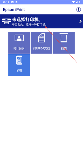 1、打開Epson iPrint應(yīng)用程序,進入主界面后,點擊未選擇打印機,進入選擇連接方式的頁面。