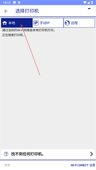 2、在選擇打印機頁面,首先查看本地選項,此選項會通過當前連接的Wi-Fi網(wǎng)絡(luò)搜索本地打印機。