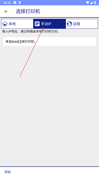 3、點擊手動IP選項,手動輸入打印機的IP地址,輸入完成后,點擊Add按鈕注冊打印機即可。