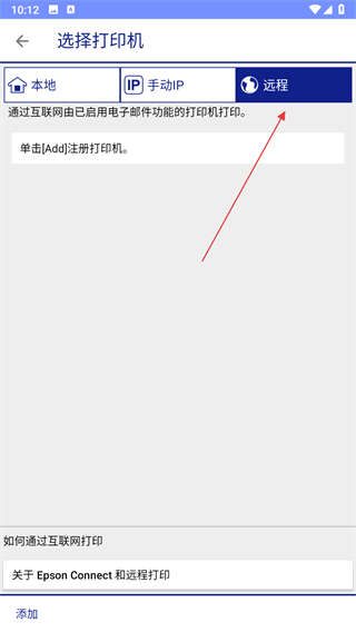 4、點擊遠程選項,由已啟用電子郵件功能的打印機進行打印,按照頁面提示進行相關(guān)操作完成連接。