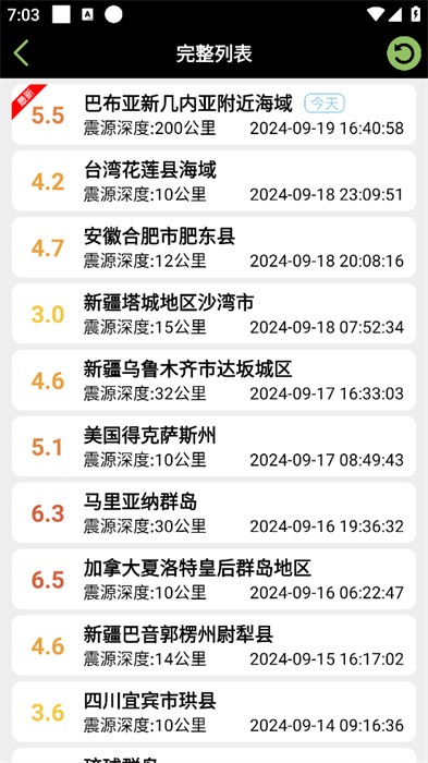 4、最后,回到首頁【列表】,這里給大家呈現(xiàn)了全部地區(qū)的地震情況,可以在線點擊來查看。