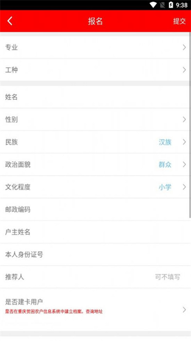 4、進入到軟件之后,找到報名的板塊,并填寫好具體的信息,就能點擊右上角的提交。