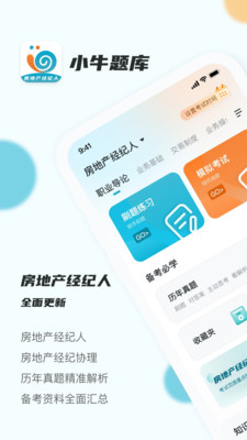 房地產(chǎn)經(jīng)紀(jì)人小牛題庫是一款專門幫助房產(chǎn)經(jīng)紀(jì)人提高專業(yè)知識的軟件,并且包含大量的考試練習(xí)題,根據(jù)自己的練習(xí)計劃更加快速的進(jìn)行學(xué)習(xí)和鍛煉模擬練習(xí)題,增加整個學(xué)習(xí)的體驗(yàn)感,并且軟件會給出更多往年的真題以及需要注意的細(xì)節(jié),在細(xì)節(jié)上提高學(xué)習(xí)成績。