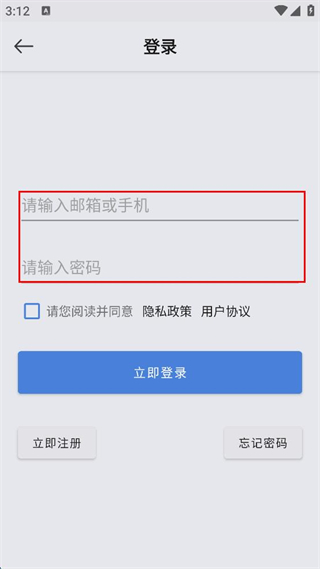 3、在登錄頁面輸入郵箱或手機號,輸入密碼。