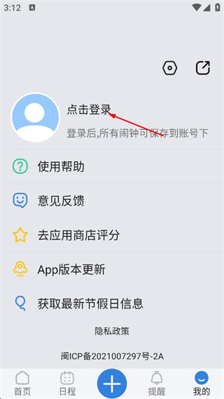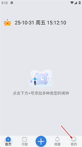1、打開鬧鐘管理軟件,點擊右下角“我的”進入個人頁面。